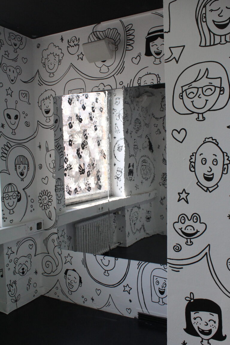 Die Humorbox lässt diesen Gedanken lebendig werden. Klänge von Gelächter erfüllen den Raum. Lachende Gesichter – von Menschen, Tieren und fantastischen Wesen – zieren die Wände, ihre Ausdrücke voller Andeutungen und Geschichten.