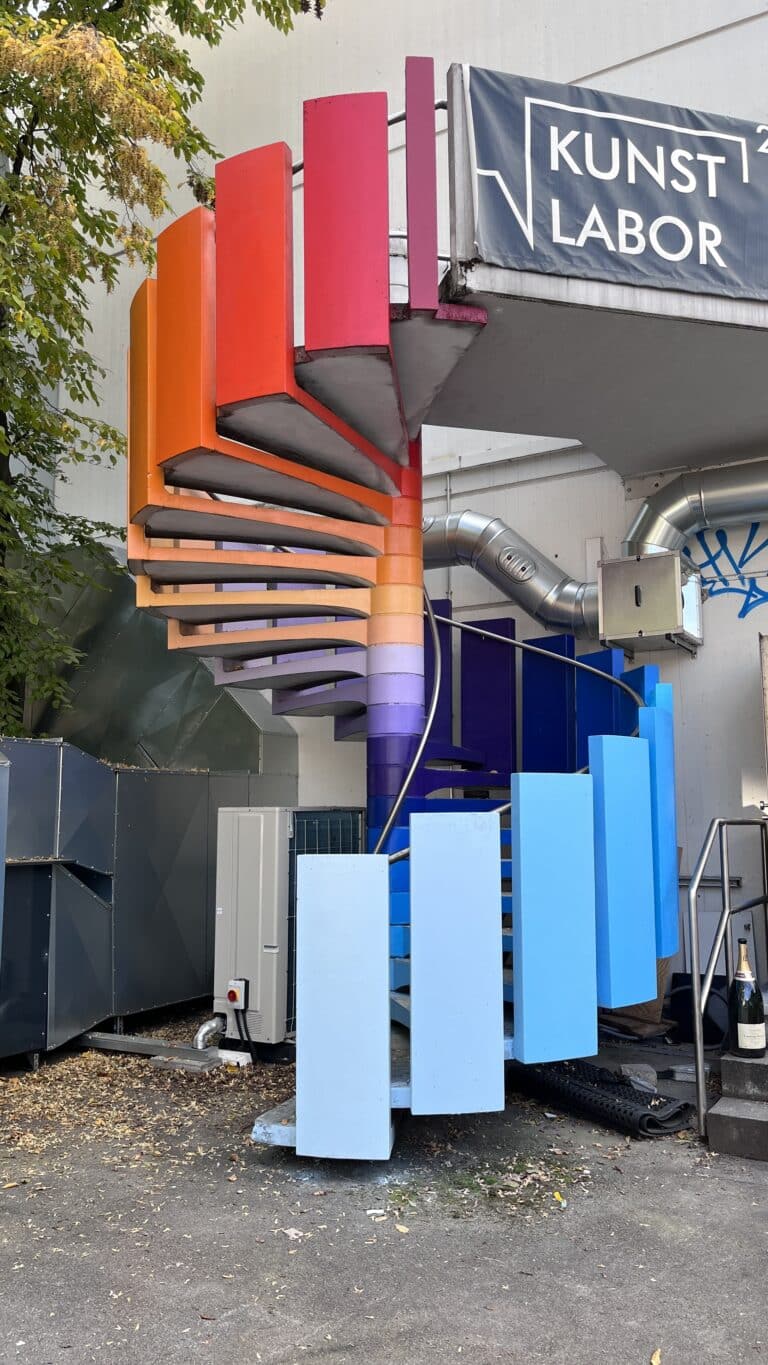 Im Rahmen der kommenden Ausstellung „Forms of perception“ in der U-bahn Galerie Universität des BA Maxvorstadt ab November 2022, ist dieses Mural entstanden. Die ca. 10m lange Wand geht mit der dahinter liegenden, besprühten Wendeltreppe eine Symbiose ein, kommt mit einer starken Farbigkeit daher und verweigert bewusst eine vorgefertigte Inhaltsangabe.