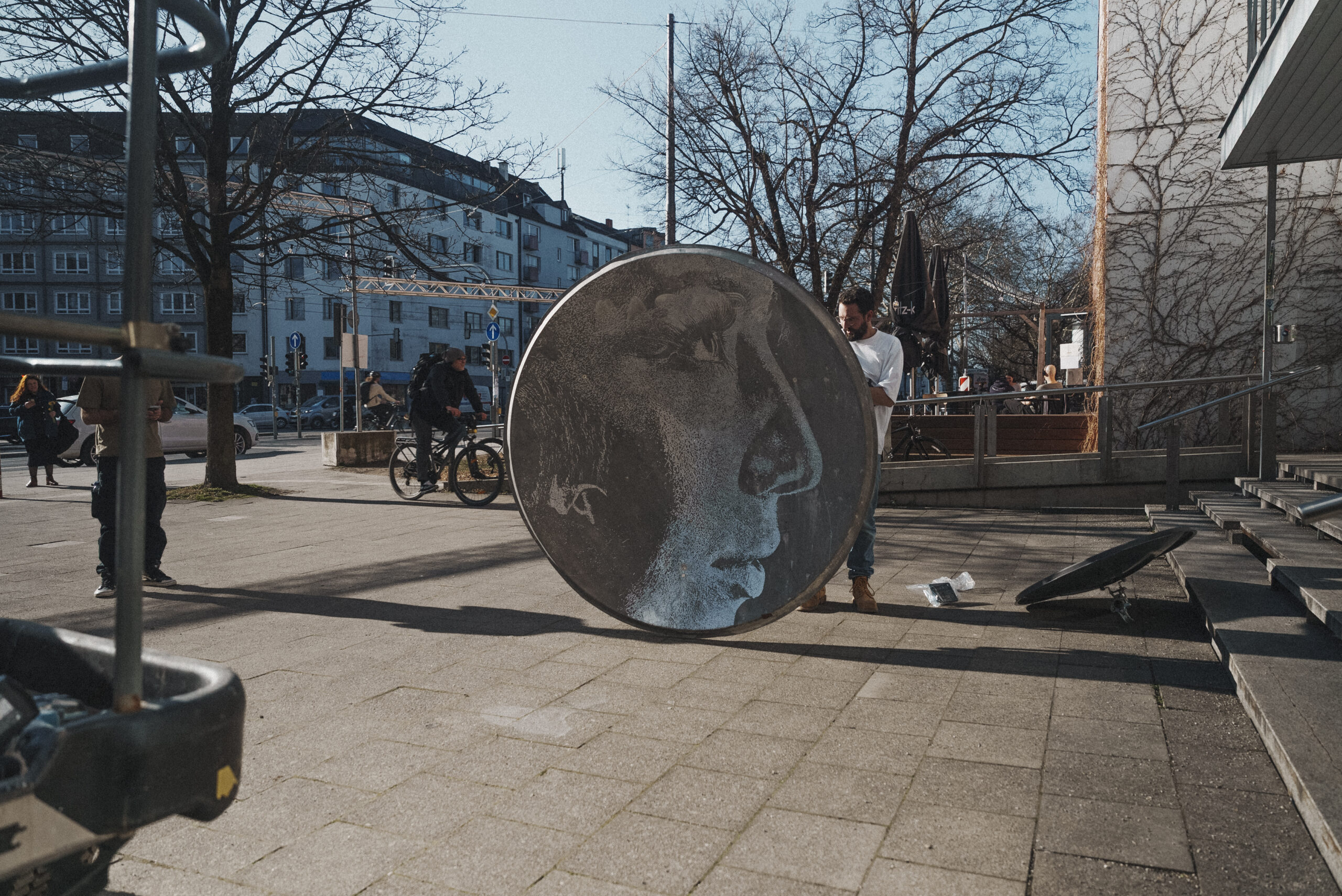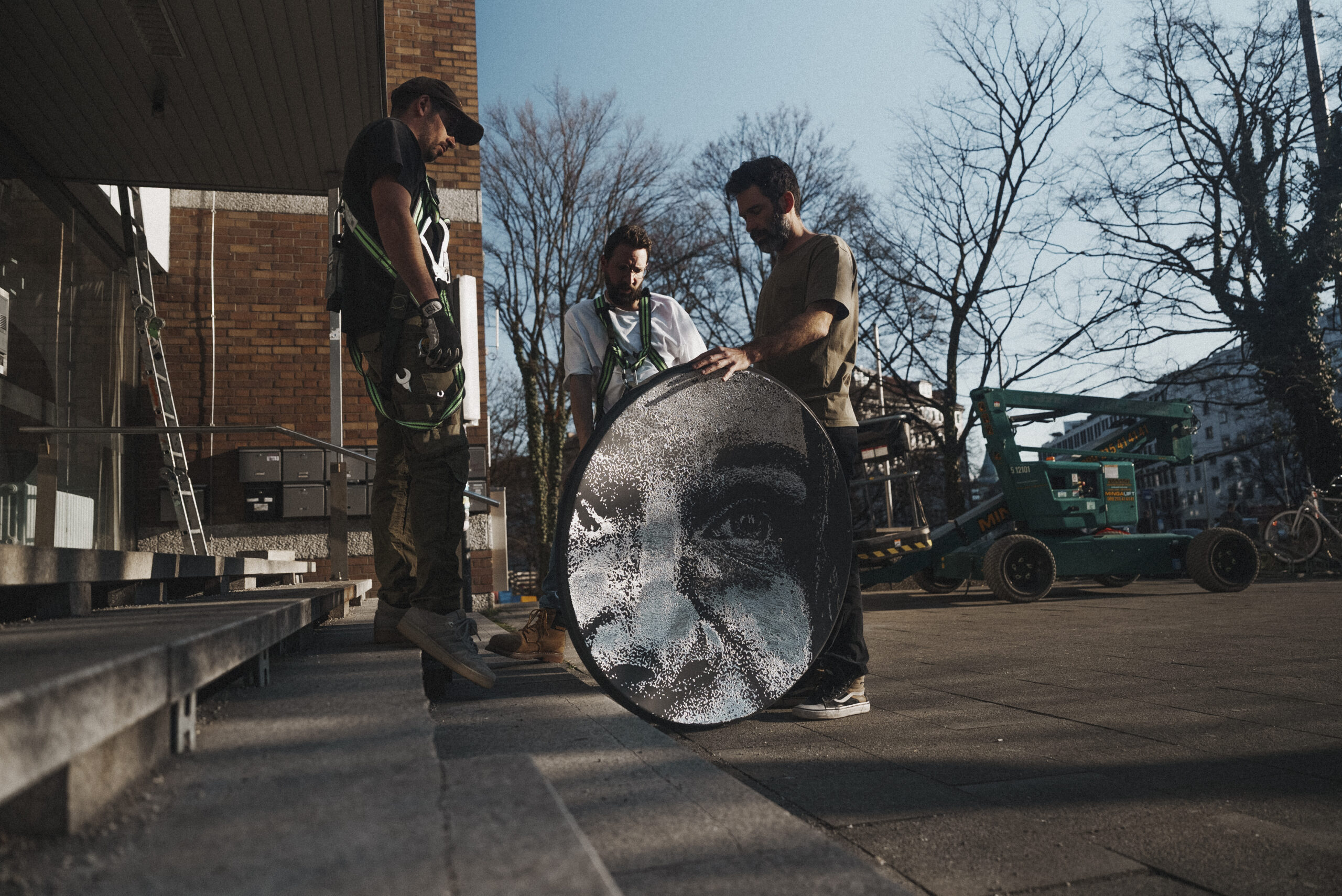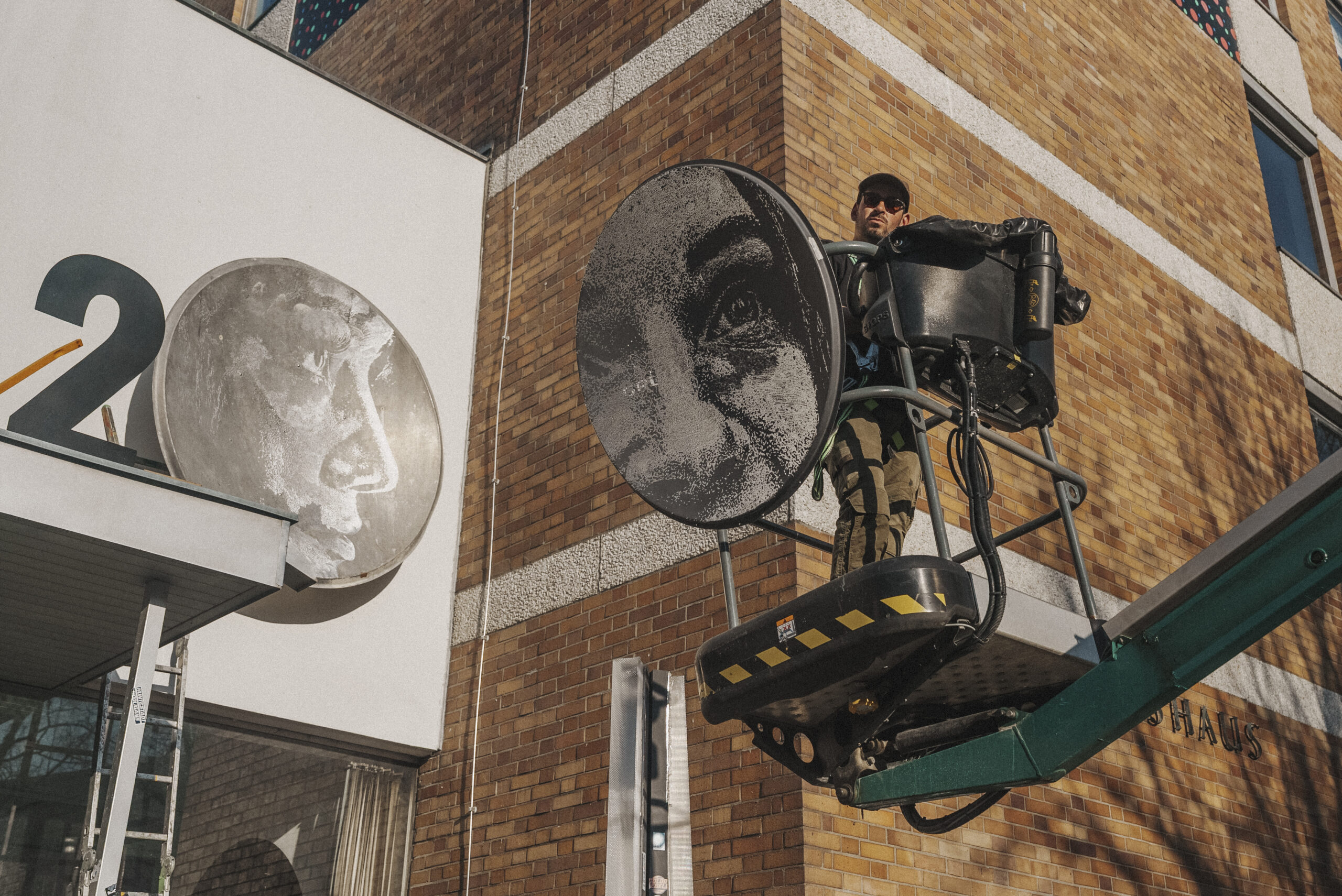 Alexandre  Farto  alias  Vhils  wurde 1987 in Lissabon geboren und gilt als zeitgenössischer „Stadtarchäologe“. Er hat eine einzigartige Bildsprache entwickelt, die auf der Entfernung der Oberflächenschichten von Wänden und anderen Medien mit unkonventionellen Werkzeugen und Techniken beruht.