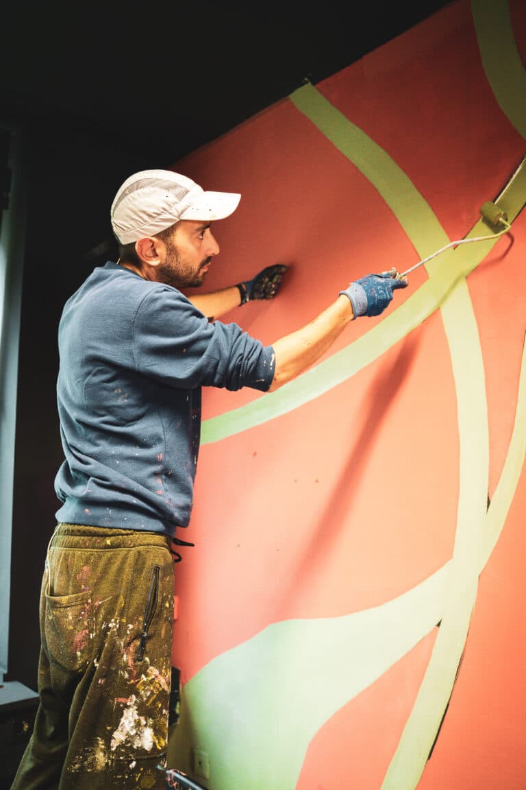 After a few years, he decides to focus entirely on his development as a visual artist. He starts painting his illustrations on walls and discovers his passion for urban art and muralism.
